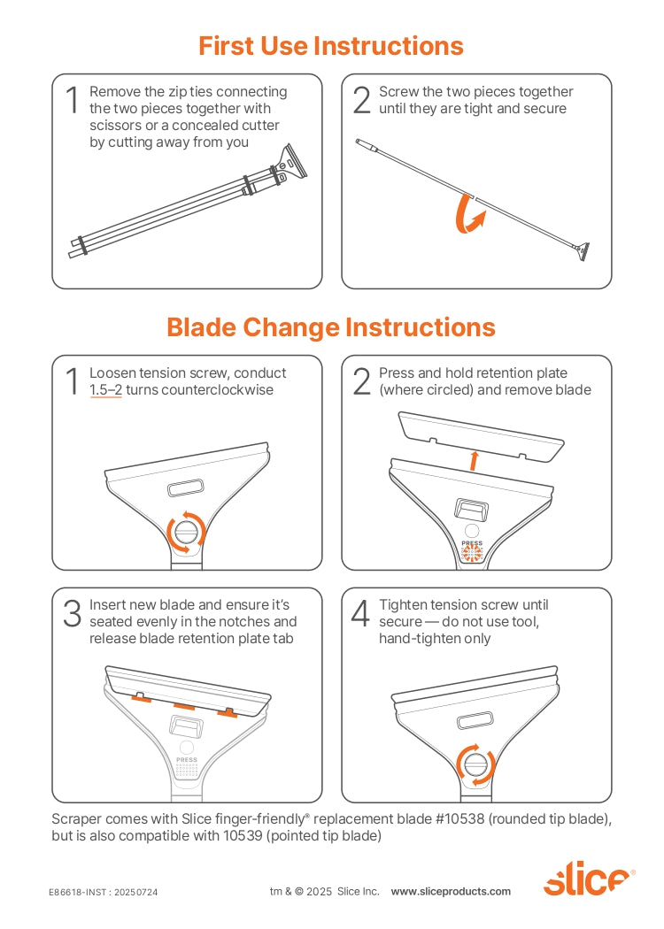 The Slice® Floor Scraper is the perfect tool for heavy duty surface cleaning. Scraping is easy and comfortable, and its unique finger-friendly® blade keeps you safe. The extra long sturdy metal handle with textured grip fits comfortably in your hand, and an angled blade encourages a natural wrist position to minimize discomfort. A blade cover provides additional protection, and the scraper is suitable for left- or right-handed users. Slice remains the first choice for safety and effectiveness in industrial settings and is now recognized as the leading safety tool in homes. From removing grease and dirt to scraping paint and plaster, Slice makes people and places safer.